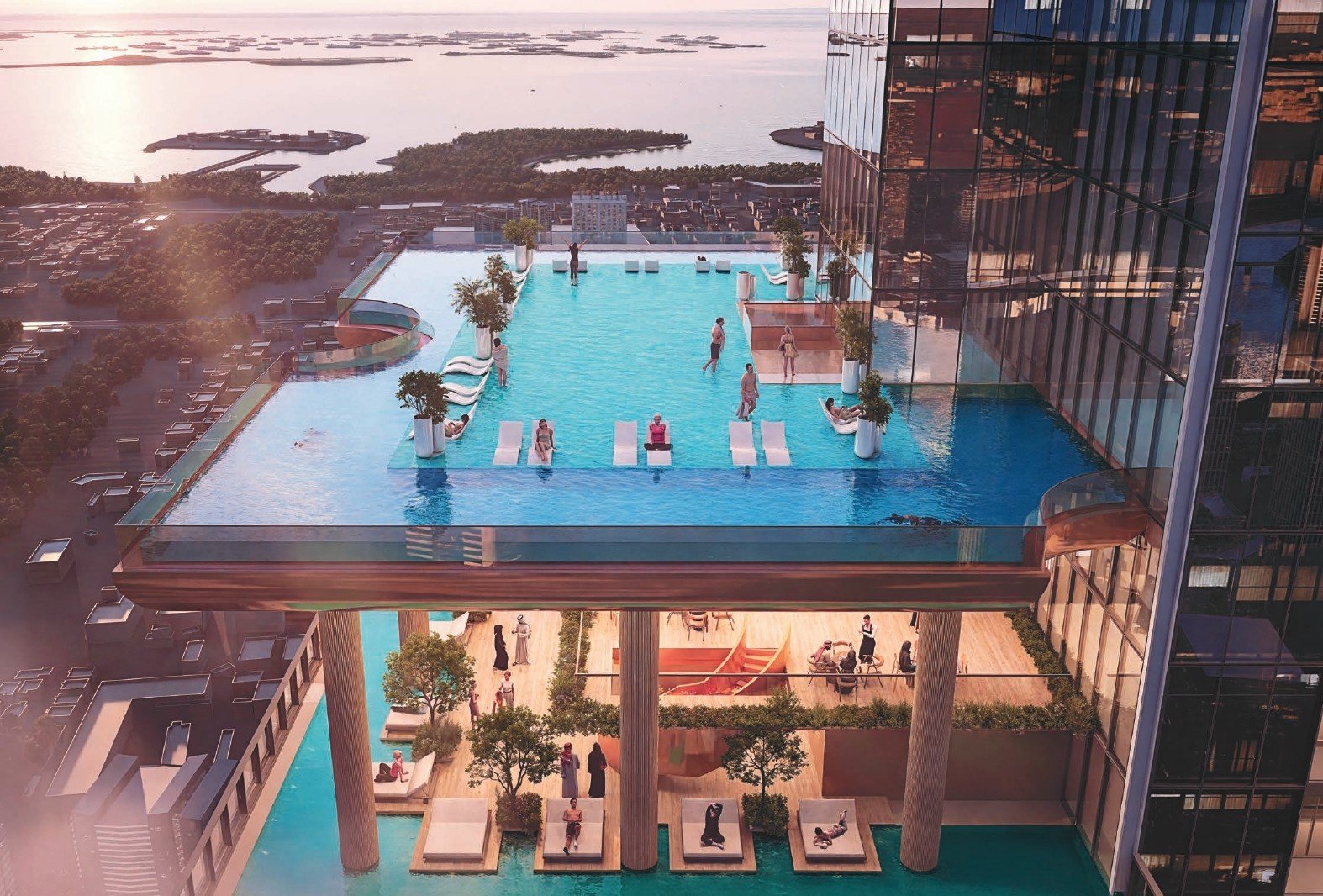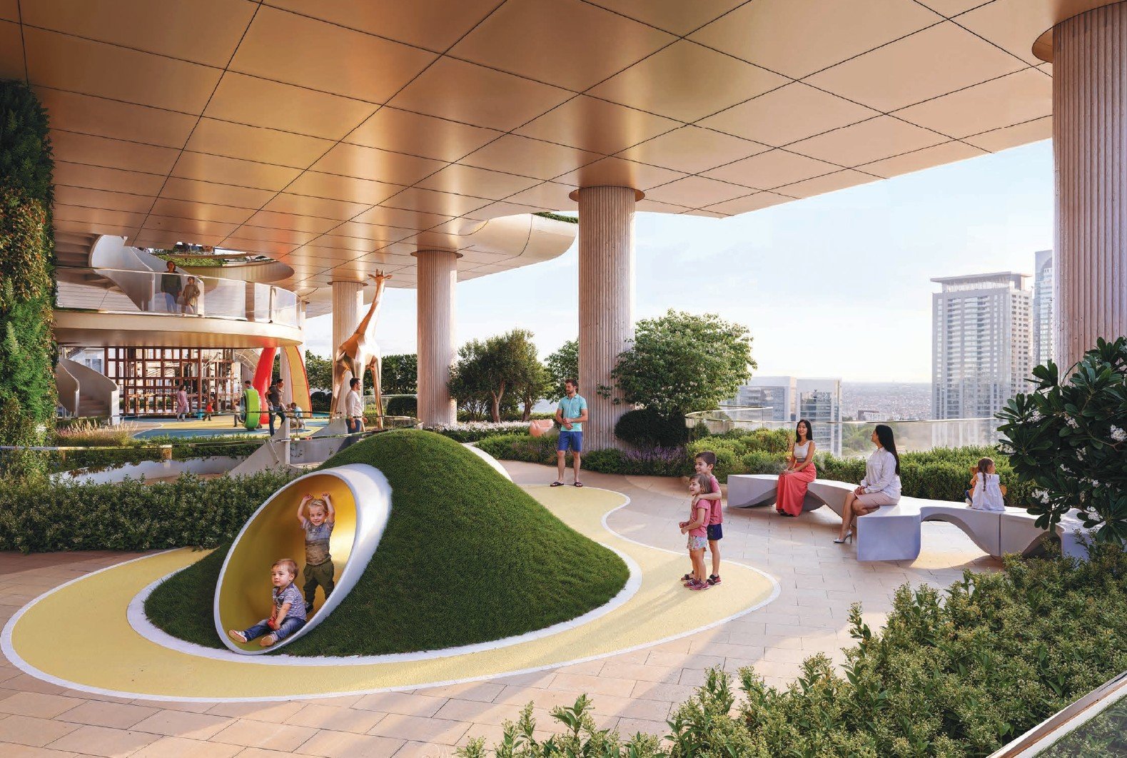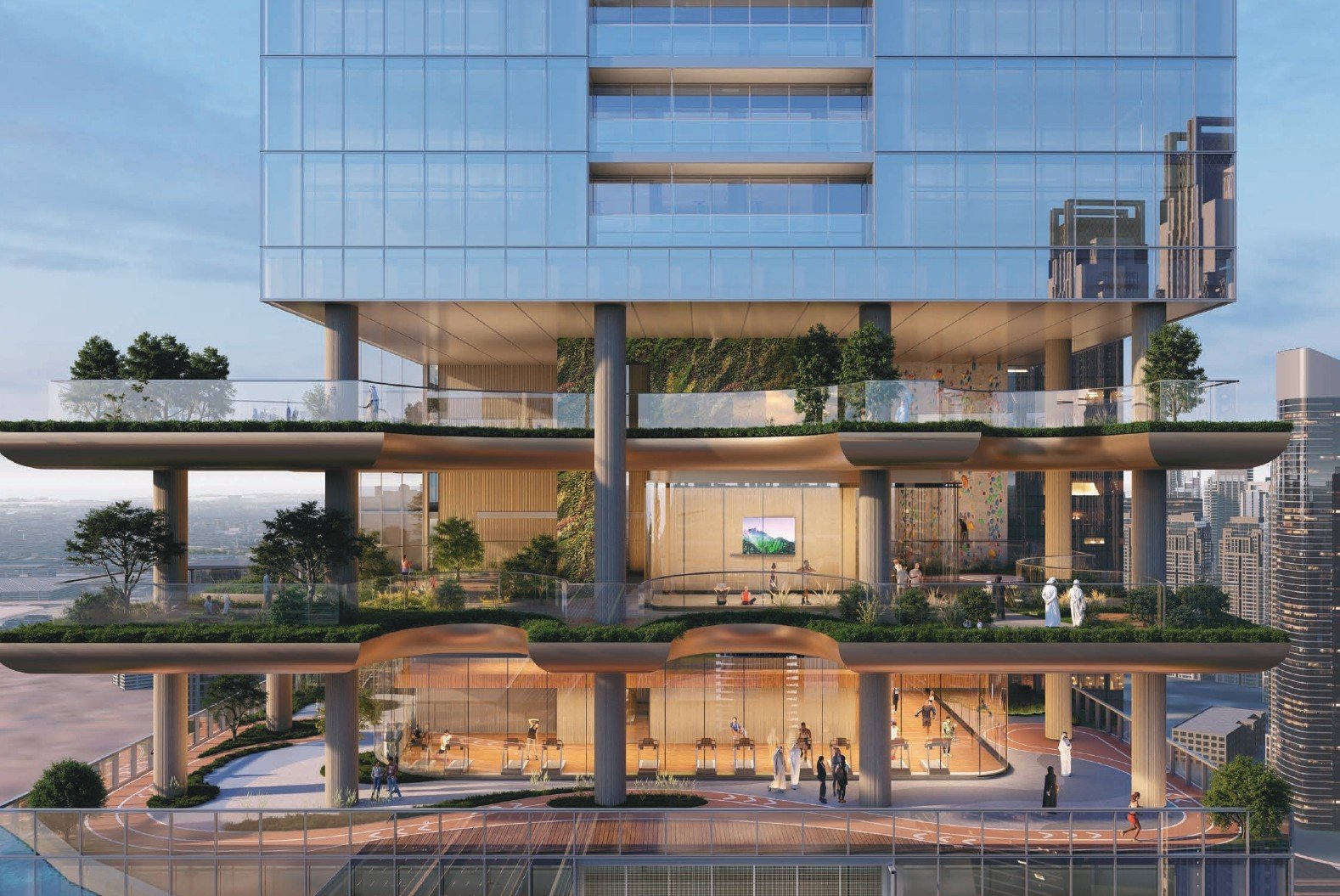 Life at Sobha SkyParks is enriched by an unprecedented collection of world-class amenities spread across four unique vertical zones. Residents can enjoy a family pool, state-of-the-art gymnasiums, a padel court, and dedicated spaces for yoga and meditation. The development features a cinema, business lounge, and children's play areas, catering to all ages and interests. These carefully curated facilities, including sky-high gardens and an infinity pool, are seamlessly integrated into the tower, ensuring that every leisure and wellness need is met without ever leaving the comfort and luxury of Sobha SkyParks.