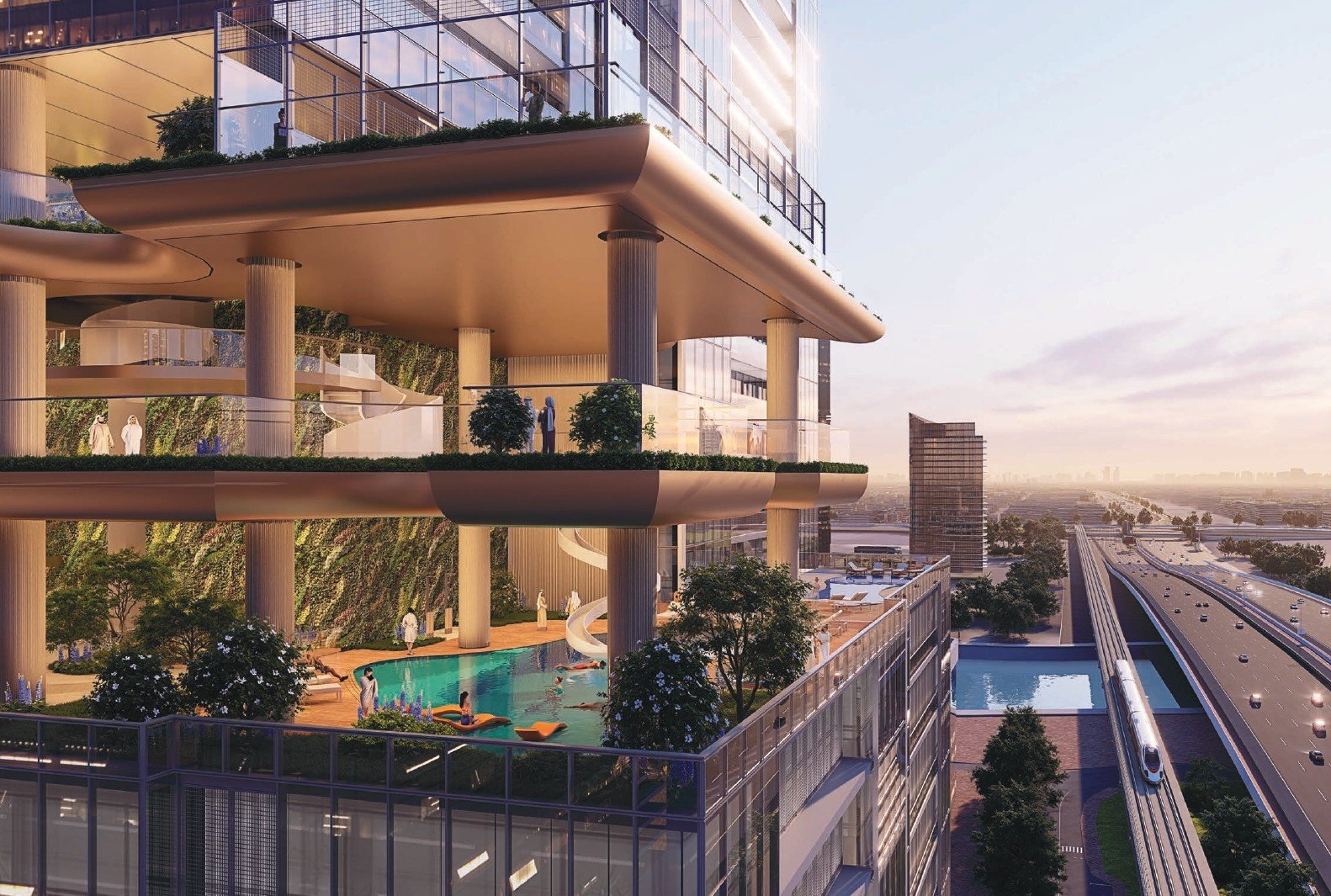 Rising majestically along the iconic Sheikh Zayed Road, Sobha SkyParks is more than a residential tower; it is a visionary landmark redefining vertical living in Dubai. This architectural marvel soars 450 meters, offering residents breathtaking panoramic views of the city skyline, the Arabian Sea, and the vibrant Downtown district. Sobha SkyParks introduces a revolutionary concept with its four distinct, six-story-high vertical gardens, creating unique “worlds in the sky” dedicated to adventure, active life, lush greenery, and luxurious resort-style living. These SkyParks provide an unparalleled amenity experience, blending indoor and outdoor spaces for leisure, wellness, and social connection high above the city. The 684 residences, ranging from one to four-bedroom apartments and exclusive duplexes, are designed with expansive windows and private balconies to maximize light and vistas. Positioned for ultimate connectivity, Sobha SkyParks offers effortless access to key destinations like Business Bay, DIFC, and Downtown Dubai, while providing a serene sanctuary above the clouds. It represents the pinnacle of elegance and innovation, where life is elevated in every sense.
